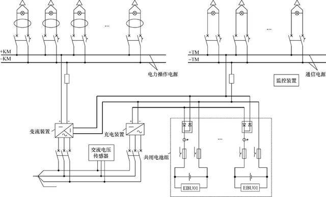 1)在有溝通電時(shí),電力操作電源和通訊電源各自都能獨(dú)立運(yùn)轉(zhuǎn)。電力操作電源選用變流設(shè)備直接整流后供應(yīng)DC 220V/110V直流母線,通訊電源選用充電設(shè)備經(jīng)由逆流設(shè)備后供應(yīng)-48V通訊電源母線,防止從DC 220V/110V直流母線經(jīng)過DC/DC二次電壓改換。在溝通停電時(shí),電力操作電源和通訊電源共用蓄電池組。此刻,經(jīng)過逆流設(shè)備并聯(lián)起來的蓄電池組,一方面可以經(jīng)變流設(shè)備升壓后供應(yīng)電力操作電源,另一方面可以直接供電給通訊電源。
