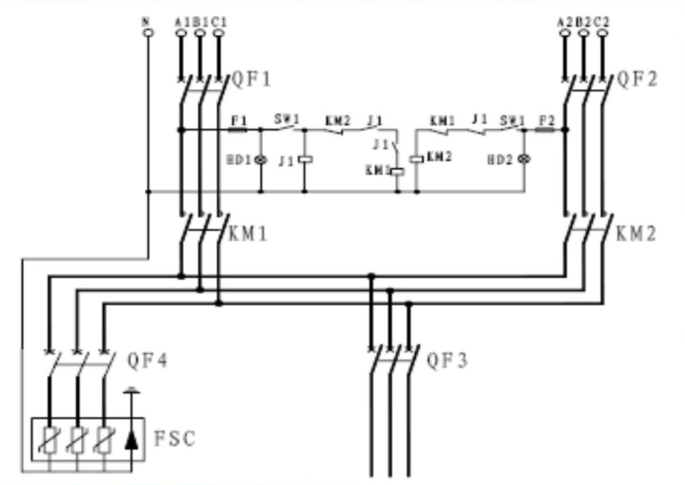 2、交流接觸器通過機(jī)械聯(lián)鎖和電氣互鎖兩種方式來防止兩路交流電源同時(shí)接入,以保證交流供電可靠運(yùn)行。