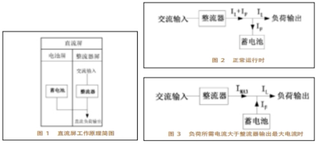 2直流屏作業(yè)原理圖1為直流屏作業(yè)原理簡(jiǎn)圖。在圖1中,蓄電池和整流器組成了變電站的直流屏,當(dāng)有溝通輸入電源時(shí),整流器作業(yè),把溝通電整流成直流電,與蓄電池一起協(xié)作,供應(yīng)直流負(fù)荷安穩(wěn)的直流電源。