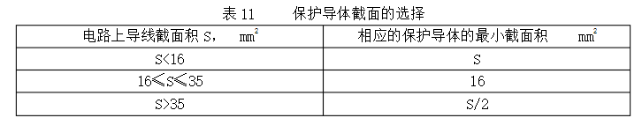 6當運用直流電源設備構(gòu)成作為維護電路部件時,其導線截面積按表11選取,也可通過計算辦法選取。