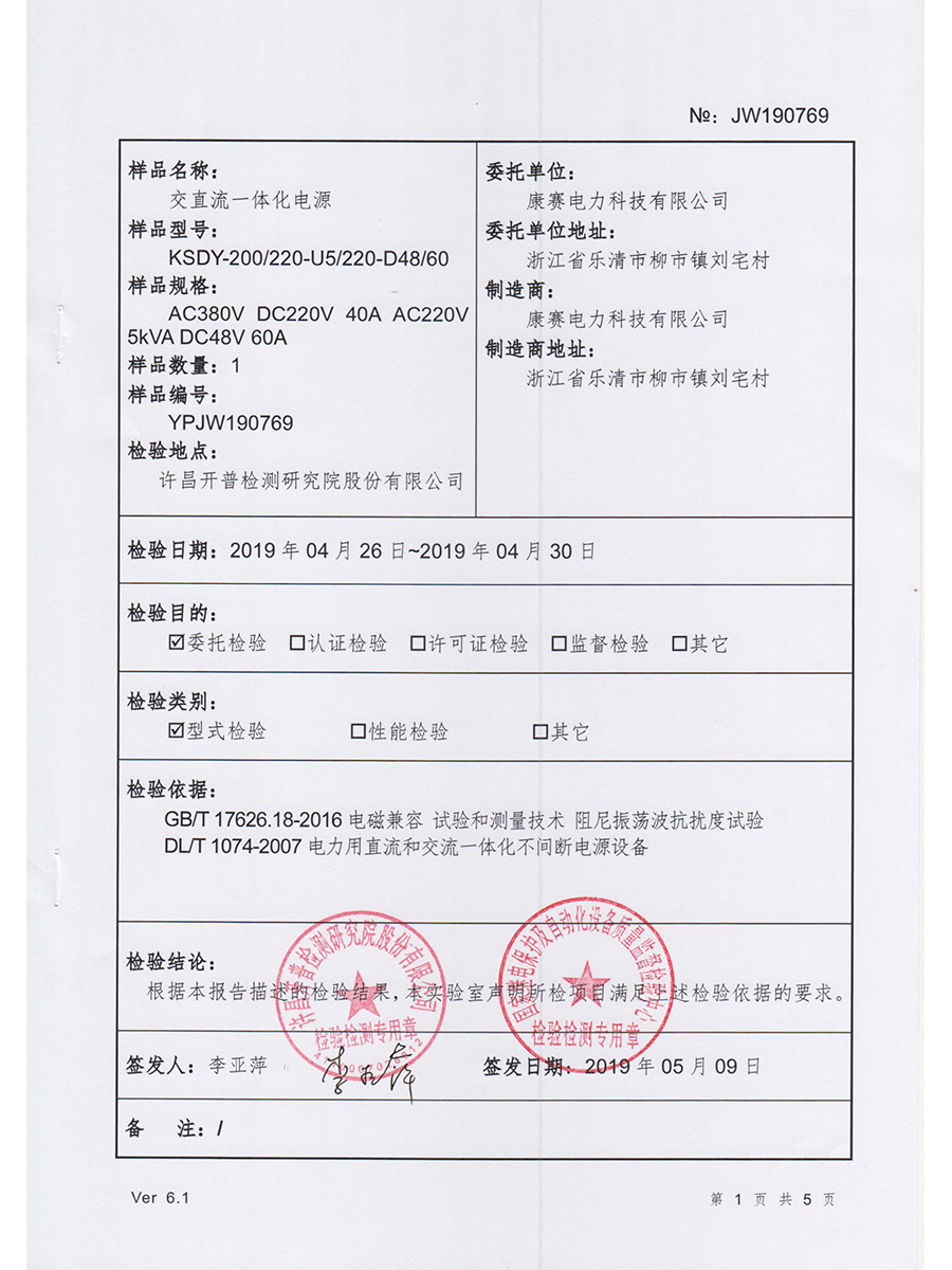 直流屏證書(shū)