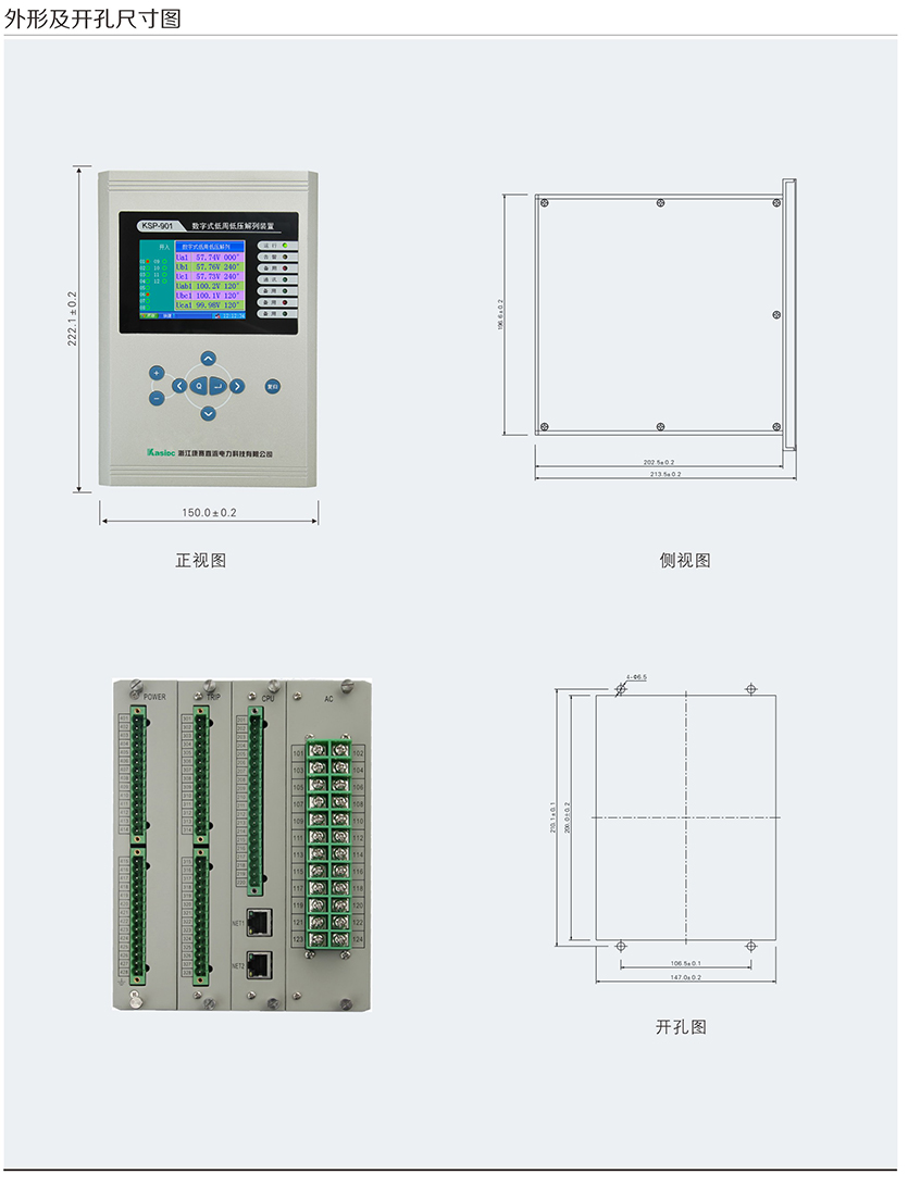 KSP-900 系列綜合保護(hù)測控裝置主要適用于 110kV 及以下電壓等級 間隔單元的保護(hù)測控,為變電站、發(fā)電廠、高低壓配電廠及廠用電 系統(tǒng)的保護(hù)與控制提供 完整的解決方案。產(chǎn)品采用完全真彩漢化的 顯示技術(shù) , 人機(jī)界面友好,使您免除査找說明書操作的煩惱。每款產(chǎn) 品均配置了基于 PC 機(jī)調(diào)試界面的接口,結(jié)合專用分析調(diào)試軟件包 , 大大改善了現(xiàn)場調(diào)試手段。裝置可以集中組屏安裝,也可以分散在 開關(guān)柜就地安裝。
